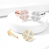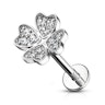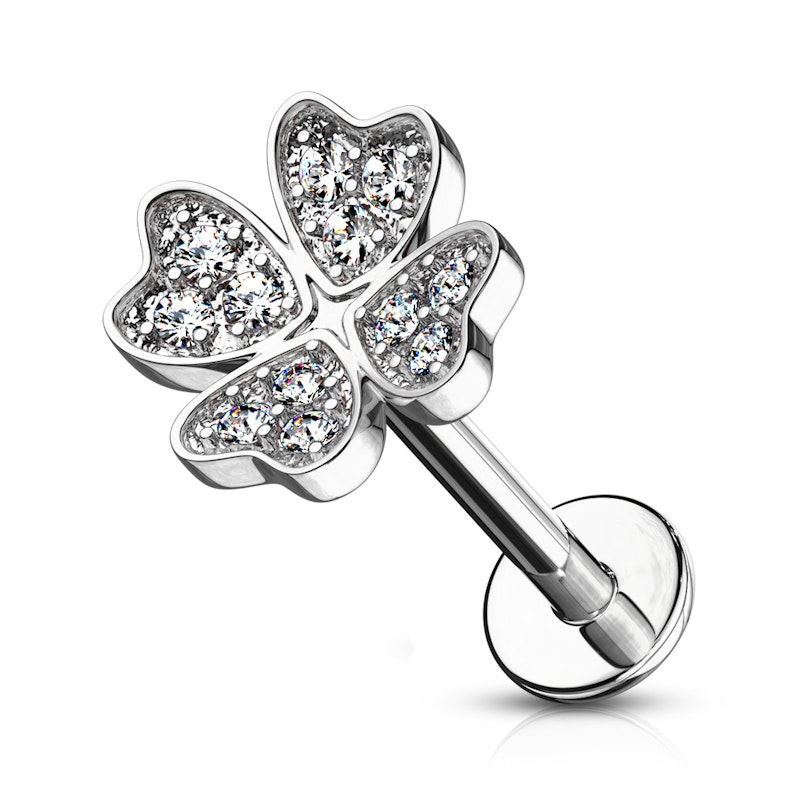 Labret med stenbesat firkløver og indvendigt gevind