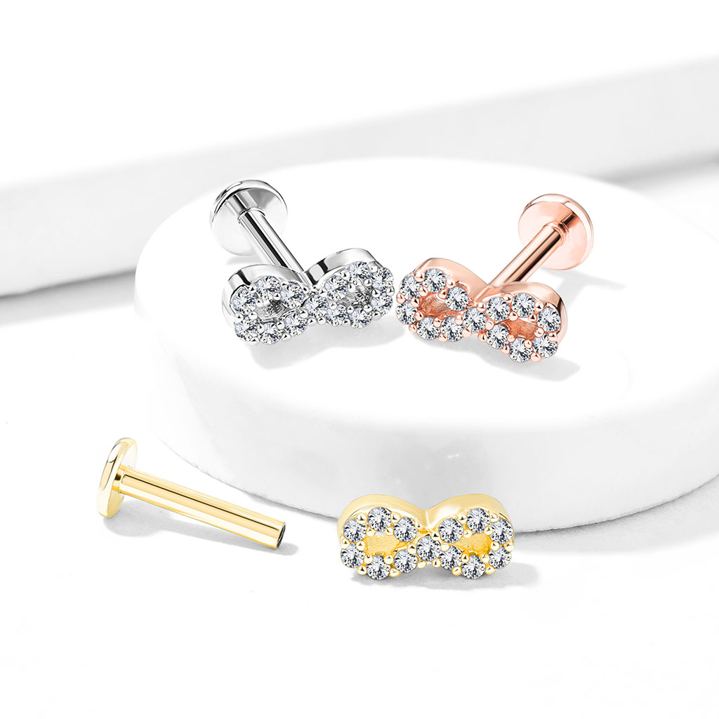Labret med stenbesat uendelighedstegn og indvendigt gevind