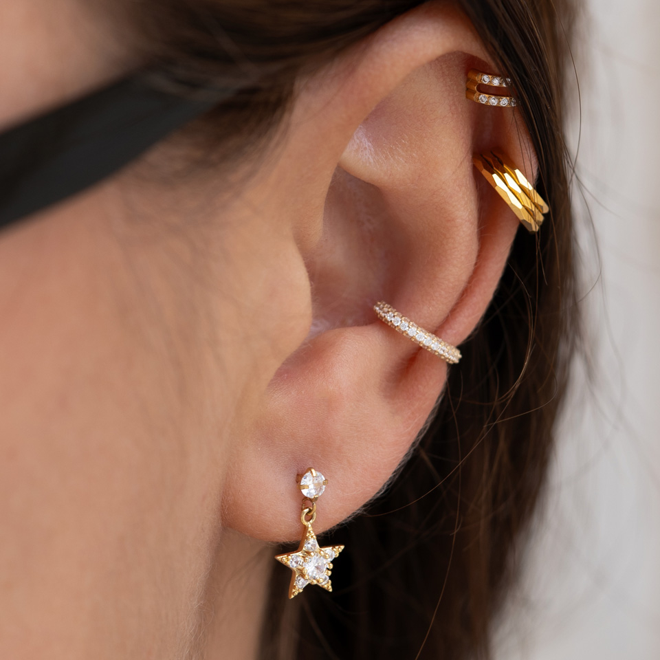 Denne labret med indvendigt gevind er pyntet med en sten på topkuglen og et stjerneformet vedhæng, der er besat med endnu flere smukke sten.