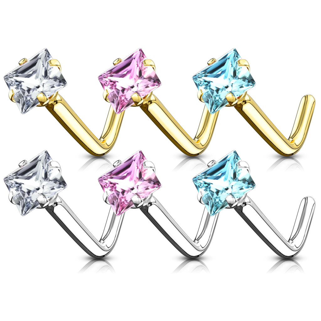 Navn: Næsepiercing af 14 karat guld med firkantet sten