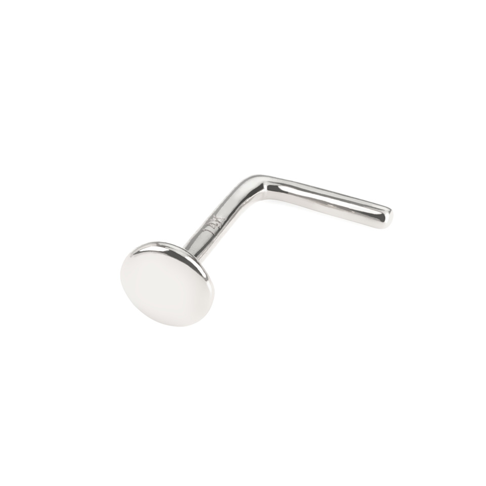 På billedet længere oppe på siden finder du en elegant næsepiercing, som er lavet af 14 karat guld. Næsepiercinger er ofte et meget feminint smykke, hvilket også er gældende for dette smykke. Du kan vælge mellem flere forskellige udgaver af smykket, f.eks. en 14 karat hvidguldsudgave, hvor hele smykket er lavet af 14 karat hvidguld. På toppen af smykket sidder der en lille top, som er blevet slået flad så den derved ligger helt fladt på din næse når smykket sidder i dit piercinghul. Toppen måler 3 mm. i diameter, dvs. smykket sidder meget diskret og elegant i din næsepiercing.