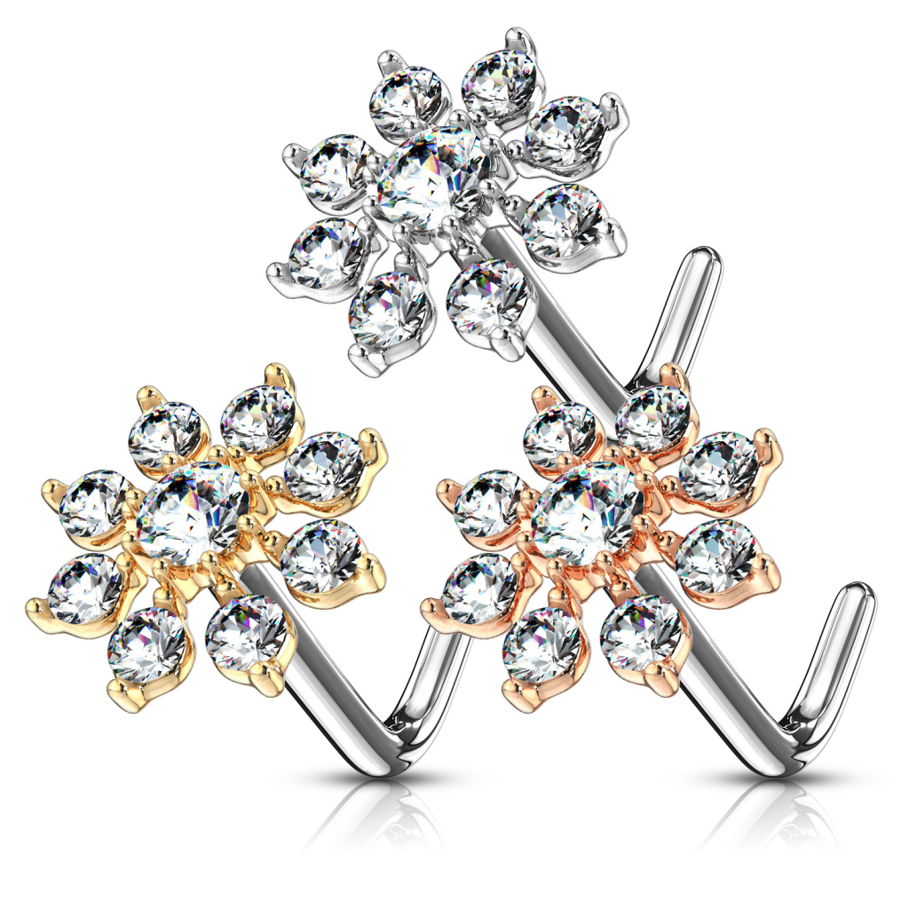 Nok med alt den ønsketænkning, nu skal vi videre til den lidt mere seriøse del. Staven på smykket er lavet af kirurgisk stål. Derudover har den også en 90 graders bøjning, hvilken er med til at smykket kommer til at sidde perfekt i din næse. Det ville også være træls, hvis smykket faldt ud hver gang du bevægede hovedet. Stjerneskuddet på fronten af smykket er lavet af messing og herefter belagt i de forskellige farver, som du kan se på billedet længere oppe. De to guldmodeller, som er nederst på billedet er blevet belagt med henholdsvis 14 karat guld og 14 karat rødguld. Den almindelige blanke model er blevet belagt med rhodium. På stjerneskuddet er der også blevet påsat nogle små klare sten - én på hver "arm" af stjernen, samt en lidt større facetskåret klar sten i midten.