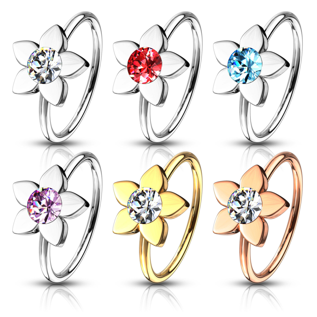 Smykket du er klikket ind på er en næsering med en påsat lotusblomst på fronten af smykket. Inde i lotusblomsten sidder der en rund sten, som du helt selv kan vælge farven på. Du kan eksempelvis få smykke med en pink eller en rød sten. Derudover kan du også vælge farve på selve smykket - vælg blandt andet mellem en guld og en blank variant af smykket. Derved kan du helt selv sammensætte din bedste udgave af smykket. Vi gør dog lige opmærksom på, at guld og rødguld udgaverne kun er udstyret med en klar sten.