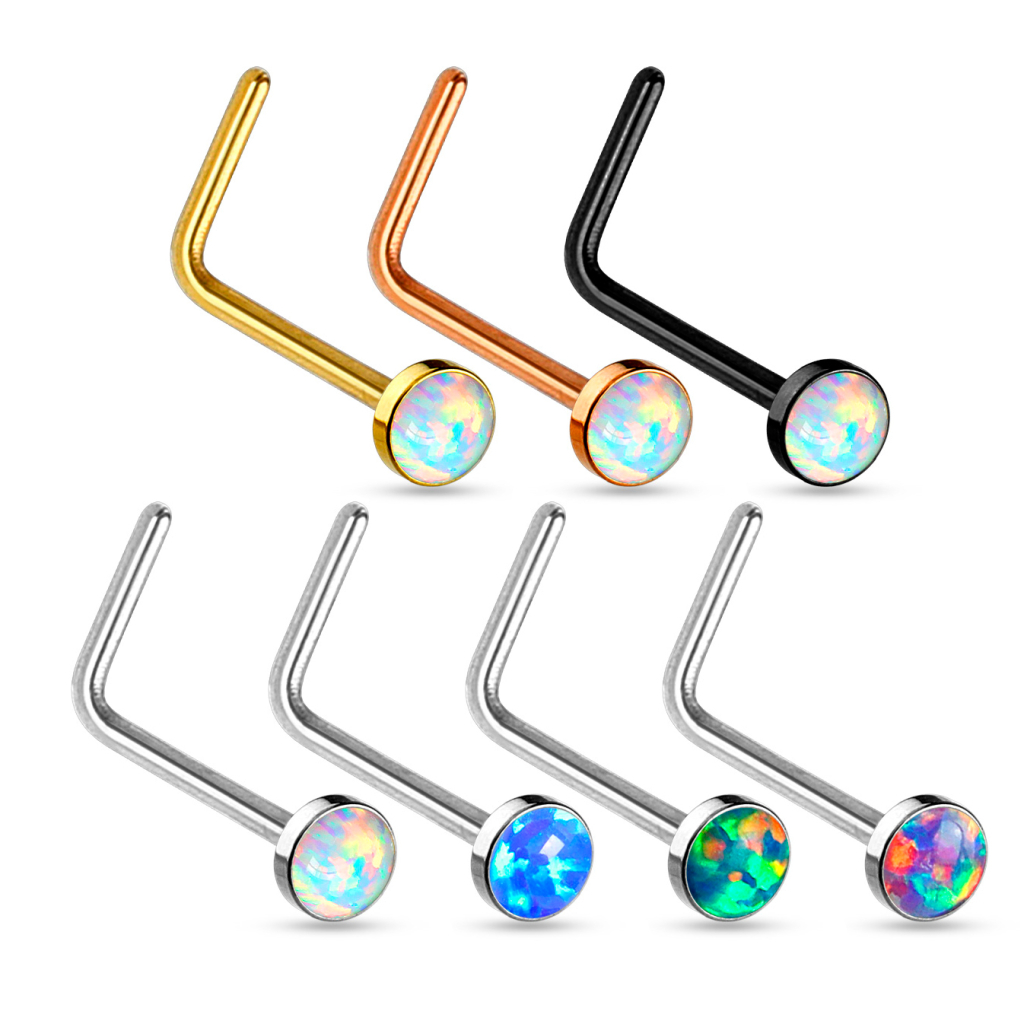 Smuk næseskrue, hvor du selv vælger farven blandt blank, guld, rødguld og sort. Uanset hvilken farve du vælger, vil næseskruen være udstyret med en flot syntetisk opalsten i fronten. Det er glamourøst, smukt og lækkert. Alle farver kan vælges med en hvid opal, men vælger du den blanke næseskrue, har du samtidig også mulighed for at vælge stenfarver som blå, grøn og lilla. Så alt efter dit temperament og din stil, bør der være en farvesammensætning der matcher dig.