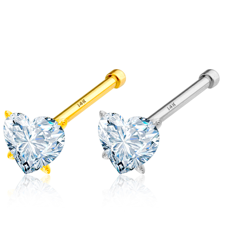 Næsestav af 14 karat guld med hjertesten