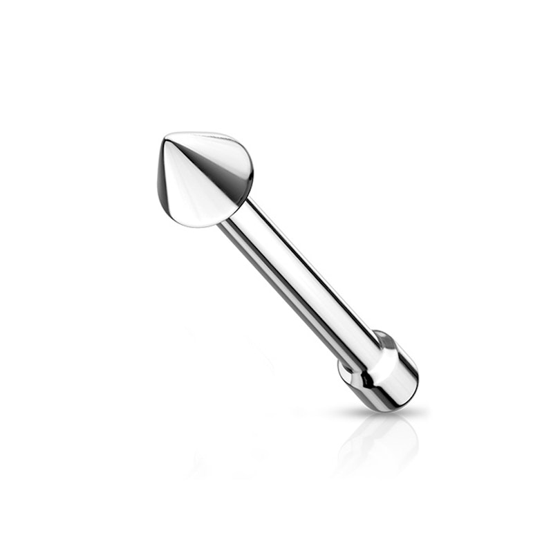 En næsestav med spike er et smykke, der kan mere, end det ser ud til. Den lige stav holder stilen ren, mens den lille spids giver lidt kant og selvsikkerhed uden at være for meget. Smykket passer godt i en næsefløjspiercing og bliver siddende hele dagen.