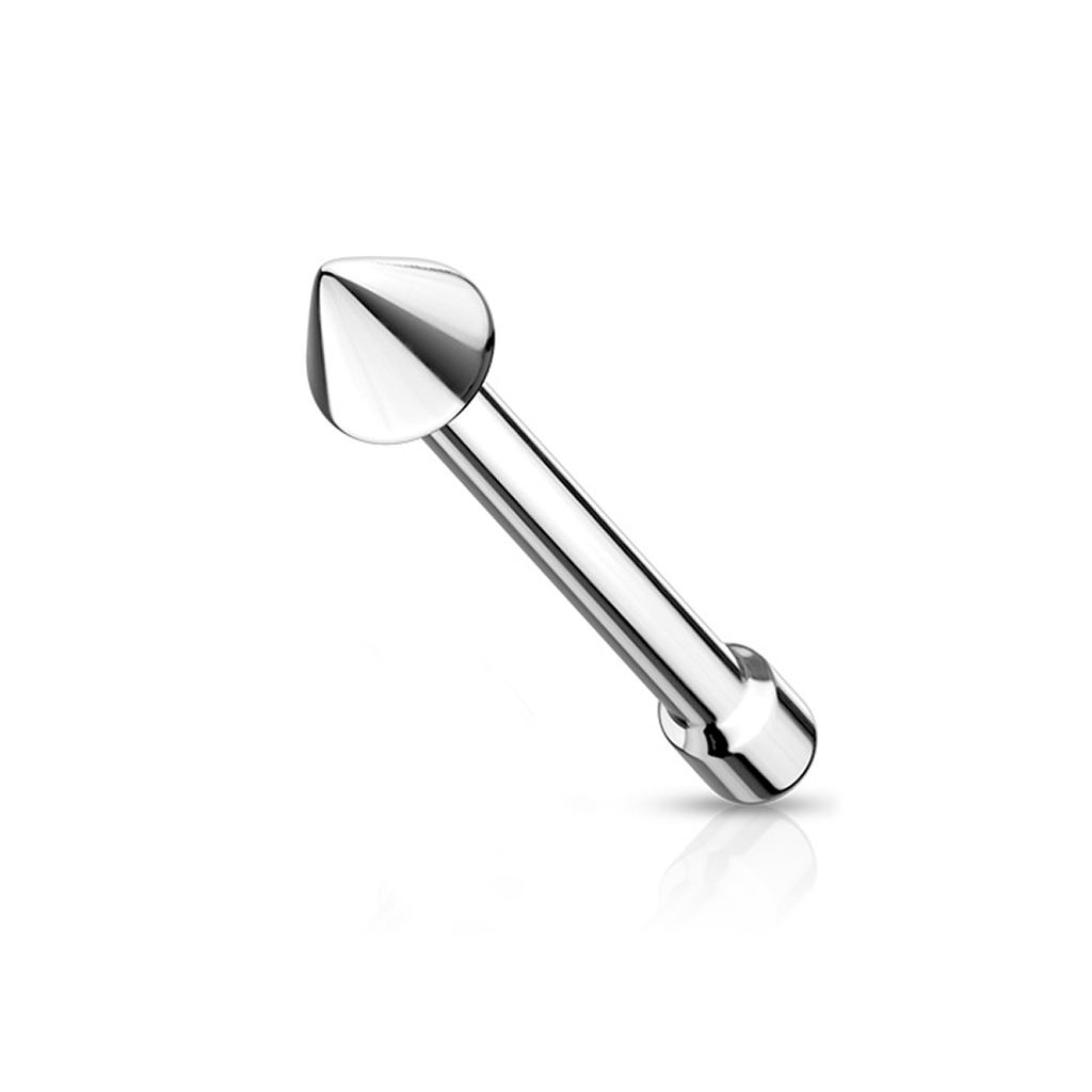 En næsestav med spike er et smykke, der kan mere, end det ser ud til. Den lige stav holder stilen ren, mens den lille spids giver lidt kant og selvsikkerhed uden at være for meget. Smykket passer godt i en næsefløjspiercing og bliver siddende hele dagen.