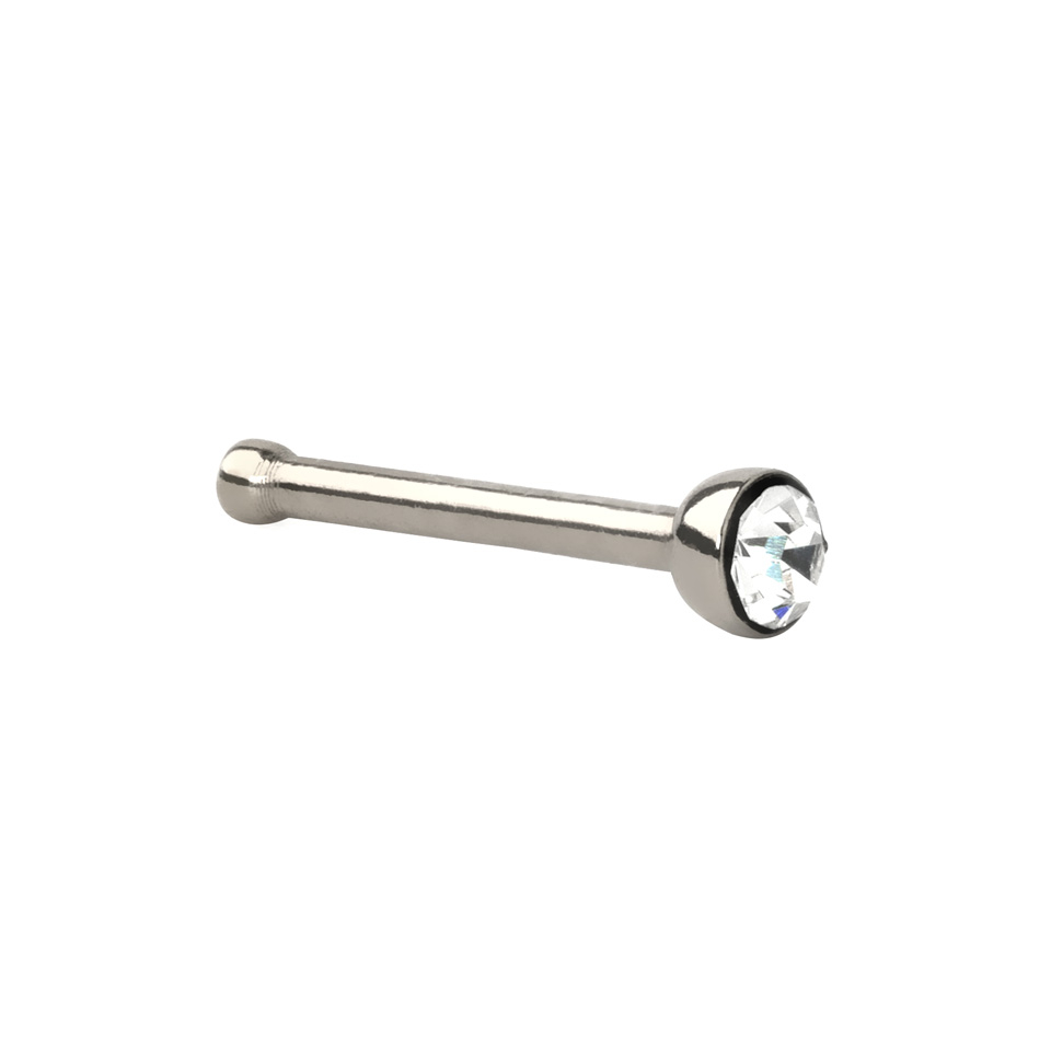 Modellen her kan vælges med flere forskellige stenfarver og vil også passe dig der har fået din næsepiercing skudt i med pistol, da den kun er 0,8 mm tyk og 7 mm lang.