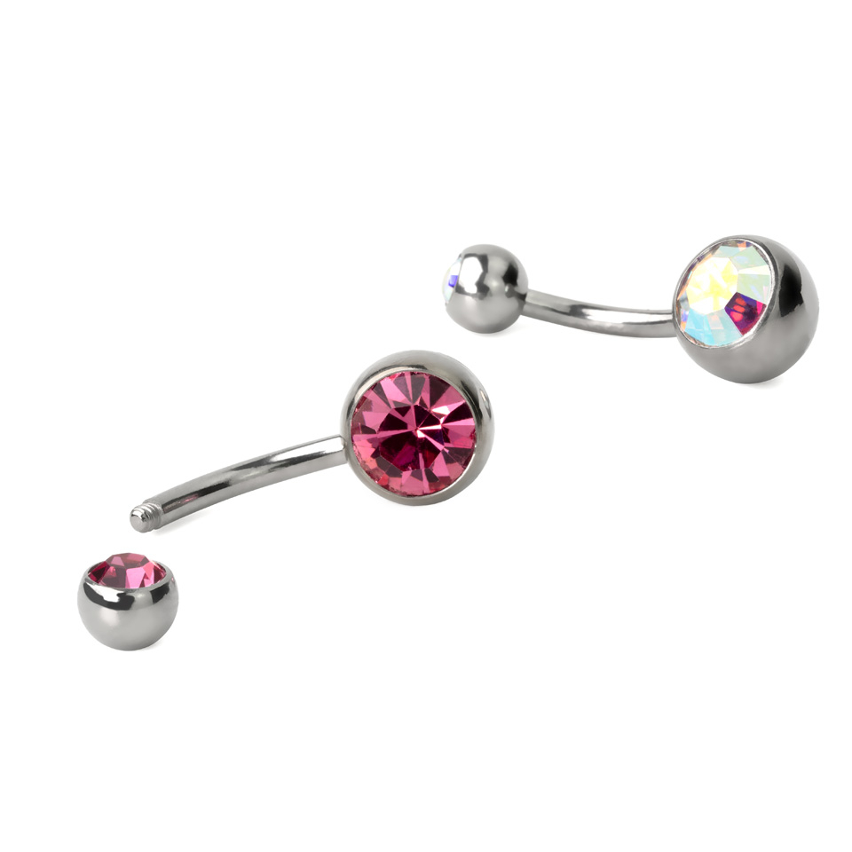 Navlepiercing af kirurgisk stål med forskellige farver sten