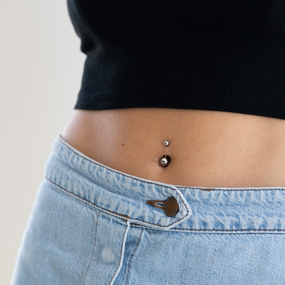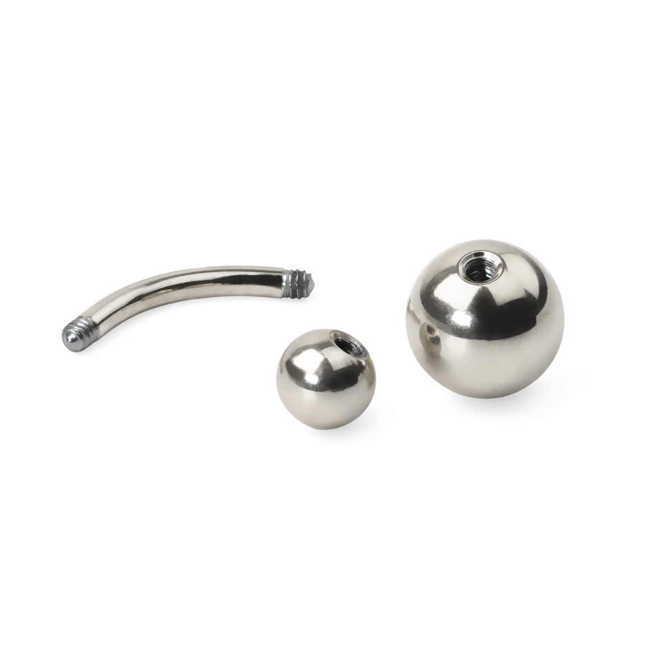 Smykket består i al sin enkelthed af en buet stav med en kugle i top og bund. Kuglen i toppen er mindre end bundkuglen, som du også kan se på produktbilledet.