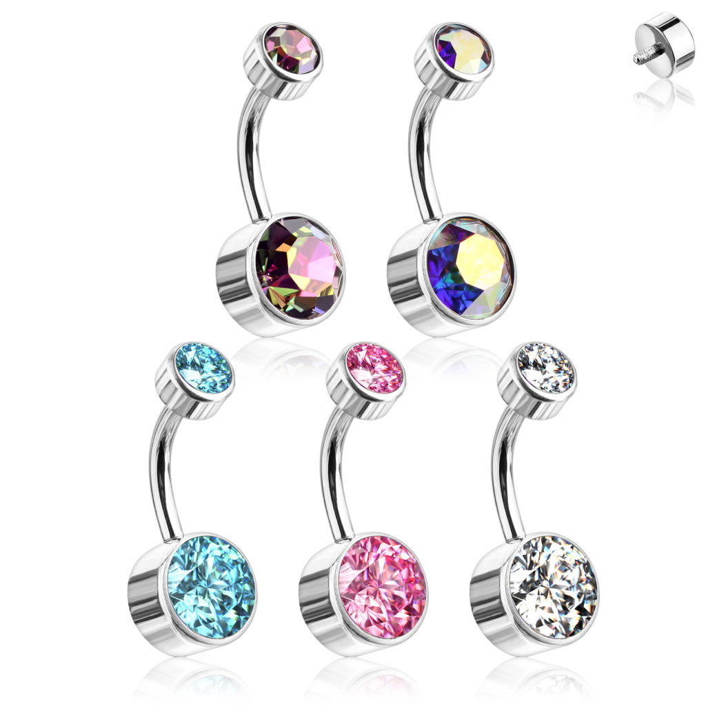 Navlepiercing af titanium med indvendigt gevind og flade kugler