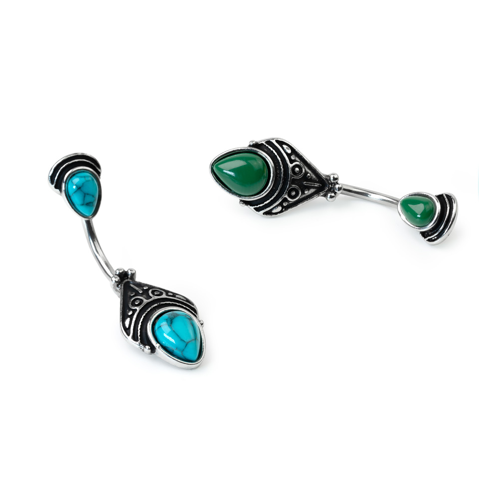 Navn: Navlepiercing med antikt filigrandesign og dråbeformede sten