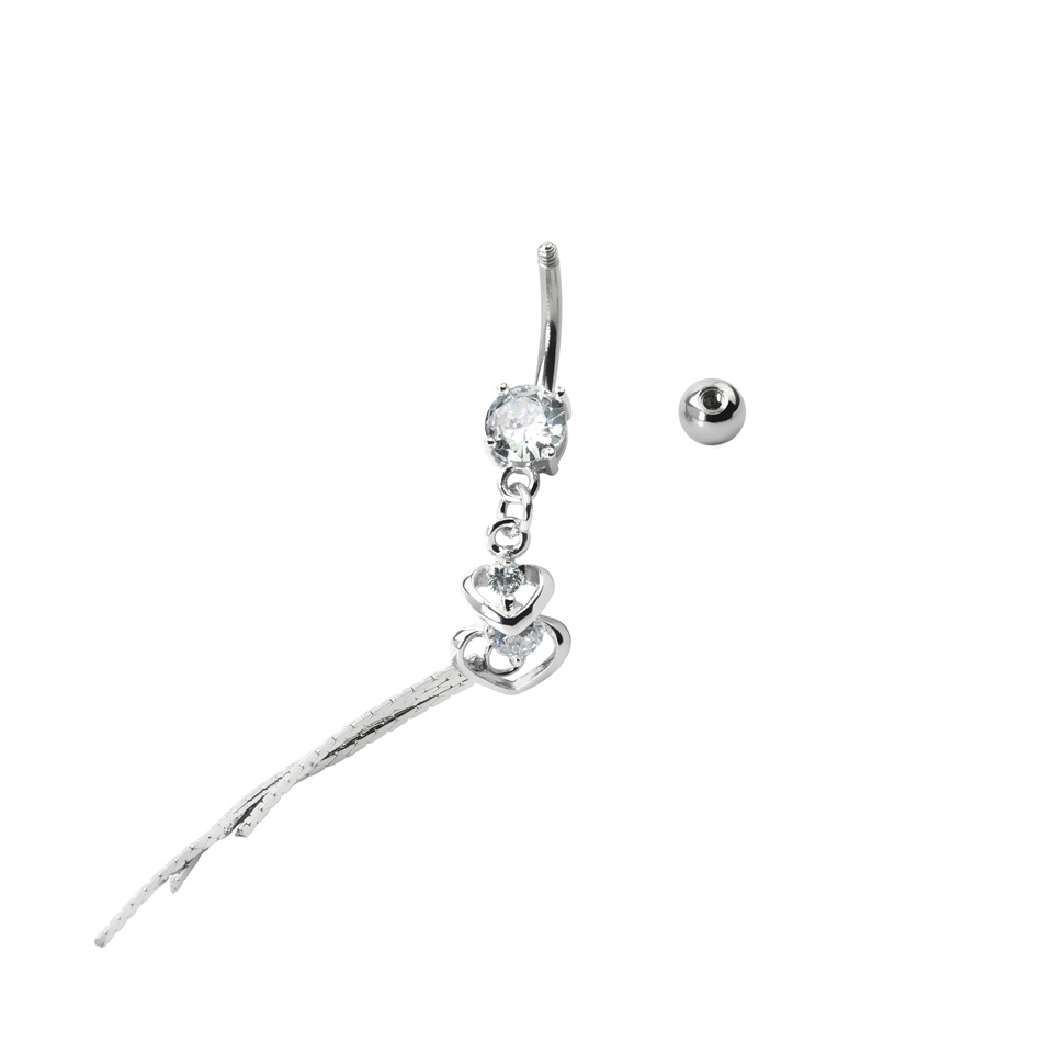 Navn: Navlepiercing med dobbelt hjertevedhæng og sten