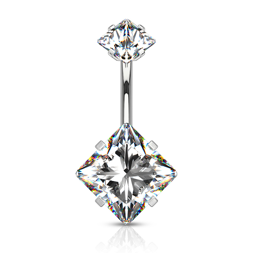 Navn: Navlepiercing med firkantede sten og indvendigt gevind