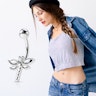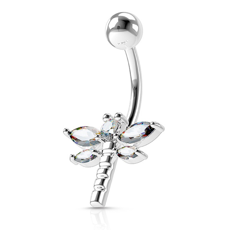 Denne utroligt lækre nalvpiercing har motivet af en guldsmed med hele fem små klare sten. Dette piercingsmykke til navlen har naturligvis de internationale standardmål og materialet er det sikre kirurgisk stål som ikke frigiver nikkel.