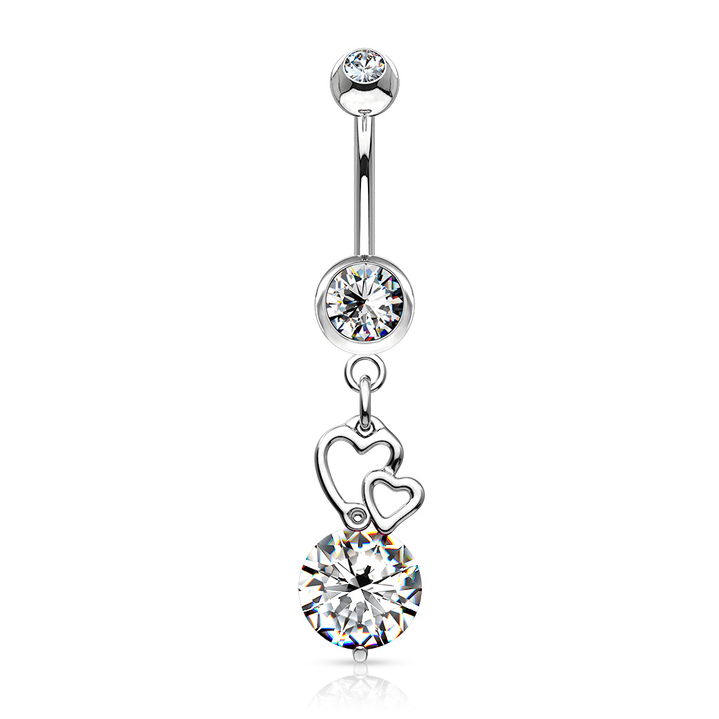 Få denne smukke navlepiercing med to hjerter og stor krystal, leveret til din navle allerede i morgen.