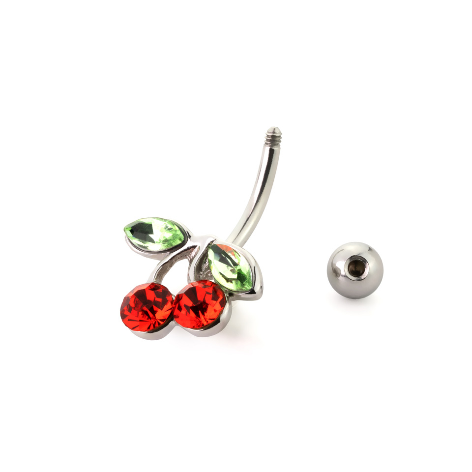 Hvem elsker ikke smagen af dejlige saftige og søde kirsebær? Det er der vist ikke mange som kan sige sig fri for. Her må du så godt nok nøjes med synet af samme, i form af denne helt vidunderlige navlepiercing af kirurgisk stål, med lækre solmodne kirsebær som motiv.
