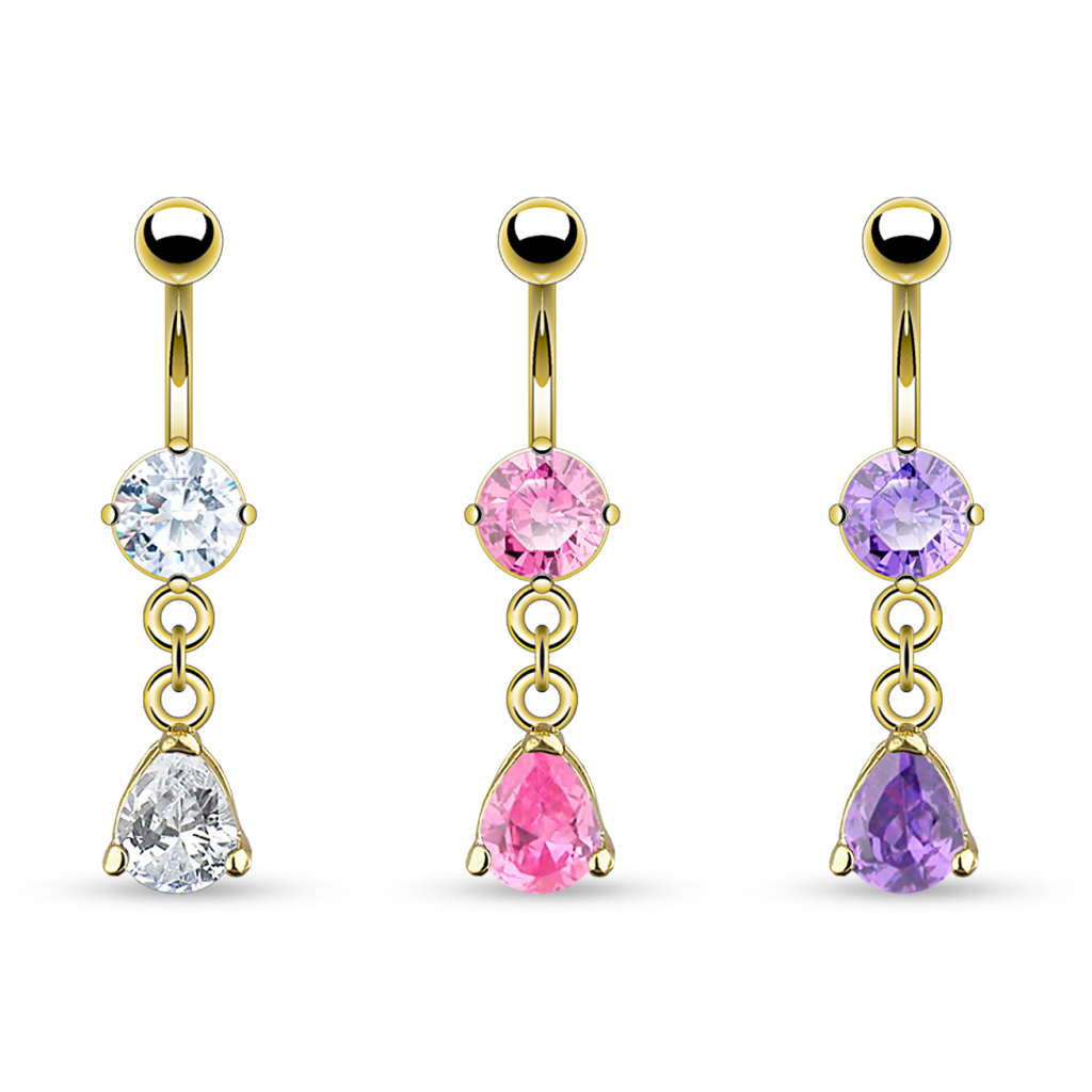 Navn: Navlepiercing med sten og dråbeformet vedhæng