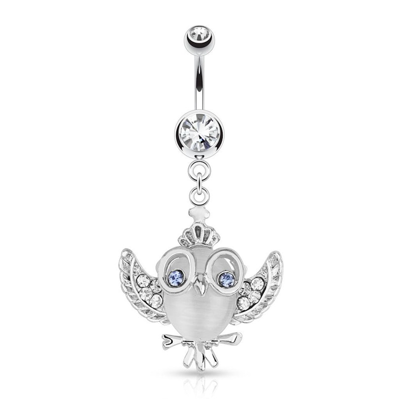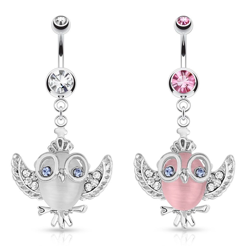 Du finder bare ikke et sødere smykke end denne yndige navlepiercing med den sødeste lille ugle i vedhænget. Den øverste del af smykket som er lavet af kirurgisk stål, består af en 10 mm. stav hvor både top- og bundkugle er udstyret med en flot sten i den af de to farver, som du selv vælger.