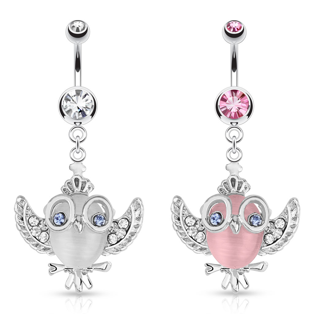 Du finder bare ikke et sødere smykke end denne yndige navlepiercing med den sødeste lille ugle i vedhænget. Den øverste del af smykket som er lavet af kirurgisk stål, består af en 10 mm. stav hvor både top- og bundkugle er udstyret med en flot sten i den af de to farver, som du selv vælger.