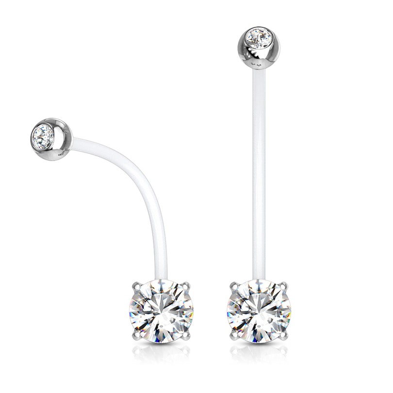 Denne navlepiercing kan nemlig bruges under graviditeten. Dette skyldes materialet som staven er lavet af, som er kaldet PTFE. Materialet er så blødt, at det kan bøjes og forme sig efter kroppen. Derved kan staven forme sig efter din mave når den vokser under graviditeten.