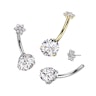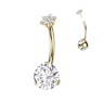 Denne navlering i titanium er besat med en stor, skinnende sten af kubisk zirconia i bunden og en sød blomst på toppen, der også består af glitrende klare sten.