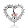 Selve smykket som er lavet af kirurgisk stål, består af en hjerteformet kamt der hele vejen rundt, er tæt besat med klare sten på ydersiden. Inde i centrum af hjertet ses så en lille blomst som er dannet af de smukke aurora borealis sten, der reflekterer alle regnbuens farver, når lyset falder på dem. Blomsten fungerer samtidig også som bundkuglen der kan skrues af og på, når smykket skal i brug.