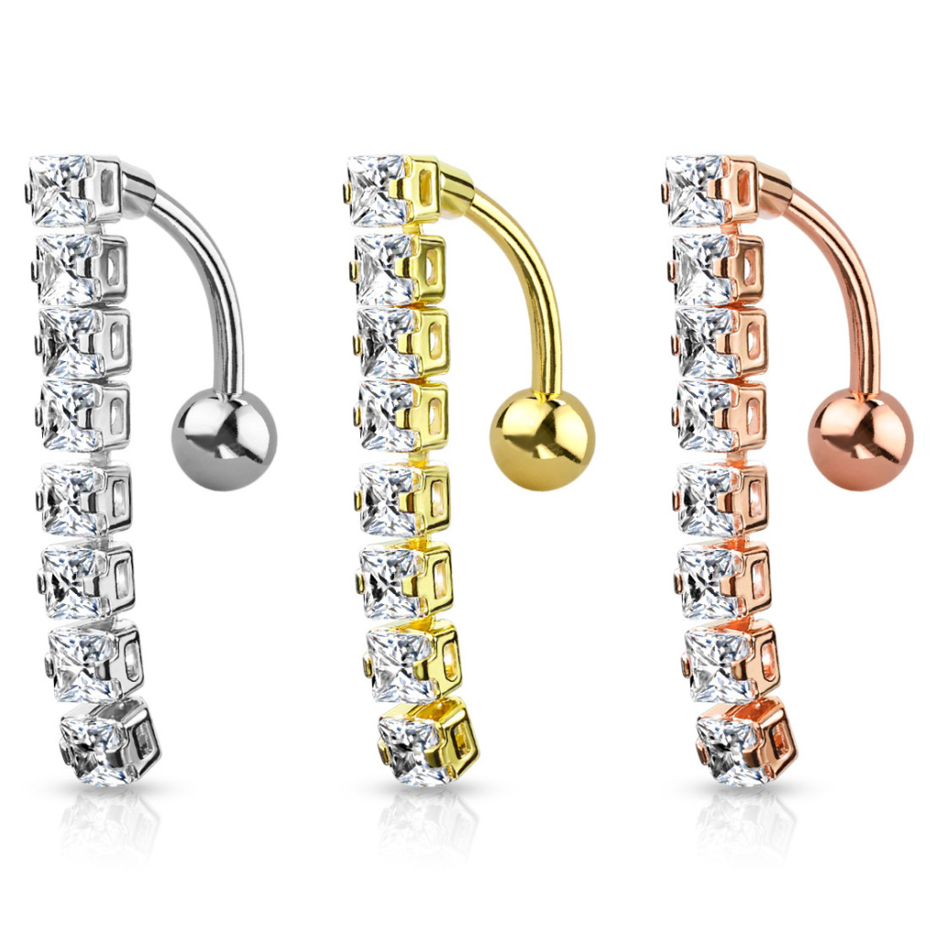 Navn: Omvendt navlepiercing med små løsthængende sten
