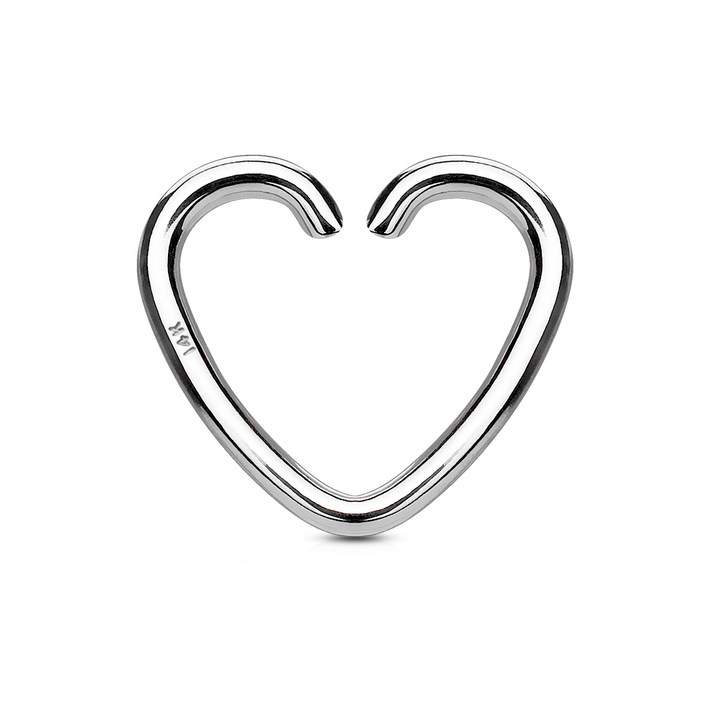 Hjertet kan købes i flere forskellige varianter, hvor du selv vælger hvilken type guld smykket skal have samt hvilken tykkelse der passer din piercing bedst. De indvendige mål på dette hjerte er 10 mm i bredden og 9 mm i højden. Alle varianter har samme mål lige bortset fra trådtykkelsen. Smykket gør sig derfor rigtig godt i de fleste ørepiercinger. Her kan f.eks. nævnes tragus, helix og daith som dette smykke egner sig bedst til.