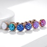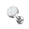 Her får du en lille og diskret ørepiercing med en kæmpe personlighed. Smykket måler 6 mm. i længden og den har en topkugle med samme mål, men det der sidder i topkuglen giver smykket et stort udseendesmæssigt boost. Topkuglen er nemlig blevet udstyret med det der hedder en druzy sten, som dog ikke er en sten men nærmere overflade af små krystaller. Krystalformationen findes i mange forskellige farver, lige så mange farver som der er i regnbuen - med dette smykke kan du også vælge mellem flere forskellige farver, f.eks. blå eller hvid. Det fede ved disse krystaller er, at du ikke kun får den hovedfarve du vælger, men også en masse andre farver i krystallerne, når de reflektere lyset som rammer smykket.