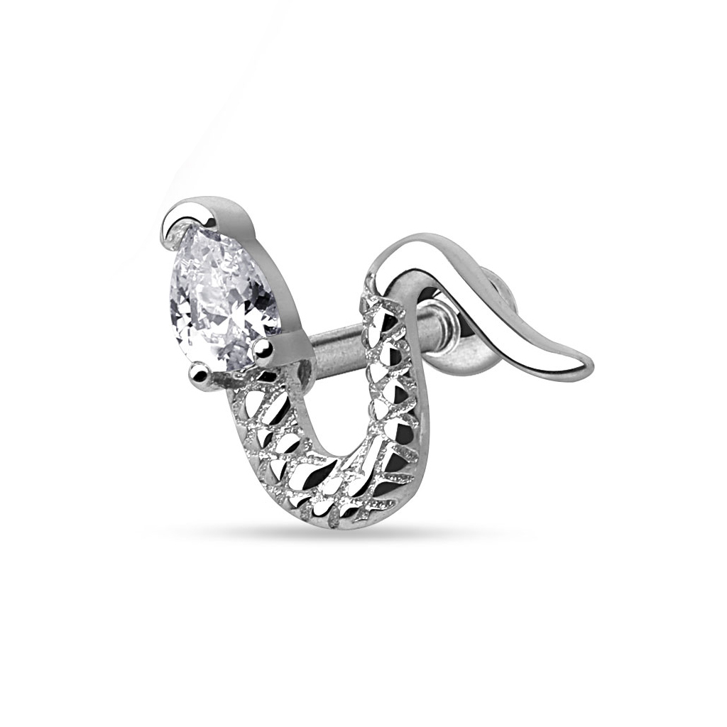 Brug den hvislende lille slange i din tragus, helix eller øreflip, smykket her er nemlig lige velegnet til alle tre placeringer.