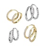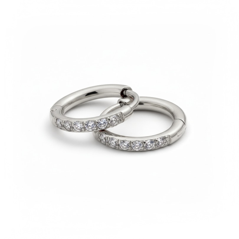 Mød dine nye bedste venner i hverdagen: dette par af huggies af kirurgisk stål med sten. Smykkerne er lavet af stærkt kirurgisk stål, der er lavet til at holde. Hver ring er besat med glitrende sten af kubisk zirkonia, der giver dig den helt rigtige balance af bling, der ikke bliver for meget.