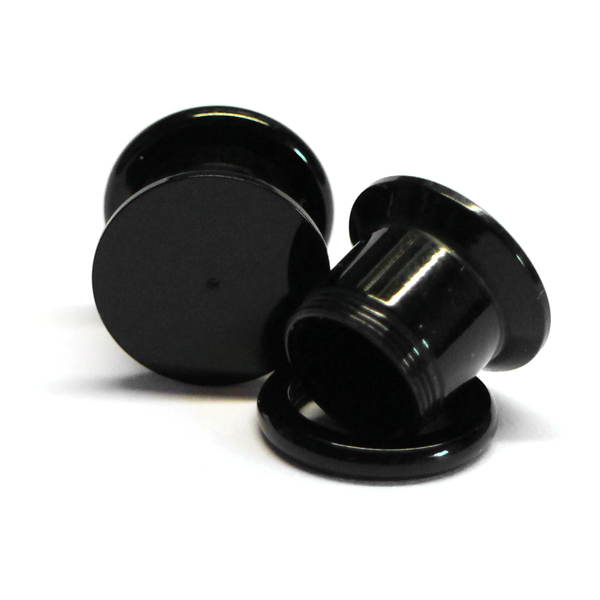Pluggen er lavet af sort akryl og har et skruegevind på bagsiden, så den er nem at tage i og ud af øret. På forsiden er den helt flad og har et lille hul i midten på 0.8 mm som passer til helt almindelige øreringe, som dem man bruger når man kun har almindelige huller i ørerne.