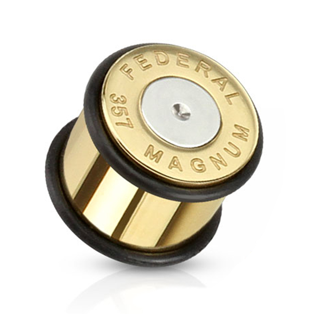 Smykket er en plug, som anvendes til stretching. Pluggen er formet som et patronhylster fra en kaliber.357 Magnum, som svarer til et 9 mm. projektil. Desværre er det sjældent at plugs (og tunnels for den sags skyld) laves i ulige numre. Så denne plug kan heller ikke vælges i det mest oplagte mål. Til gengæld findes den i 6 andre størrelser. (Fra 6 mm. til 16 mm.)