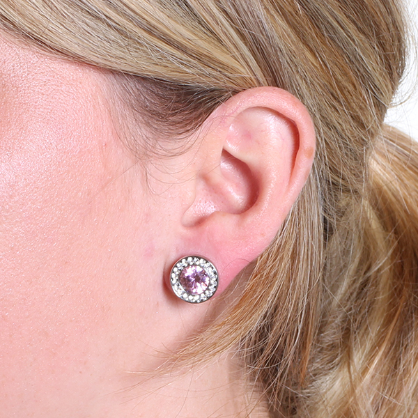 Pluggen er lavet af kirurgisk stål og har på bagsiden et skruegevind, for lettere at kunne få smykket i øret. På fronten er der i centrum den store sten, som du selv vælger farven på. Rundt om stenen sidder der i kanten mange små klare sten. Jo større diameter du vælger, jo flere sten sidder der rundt i kanten.