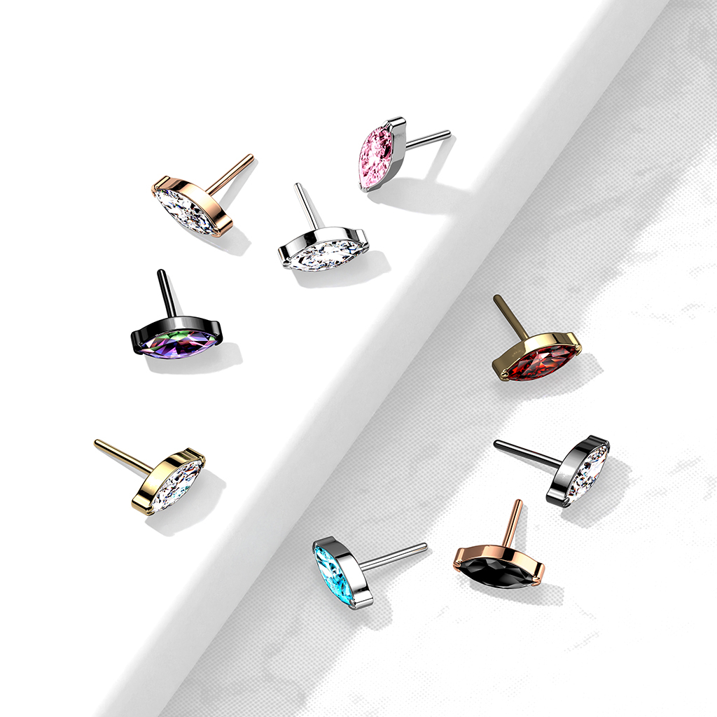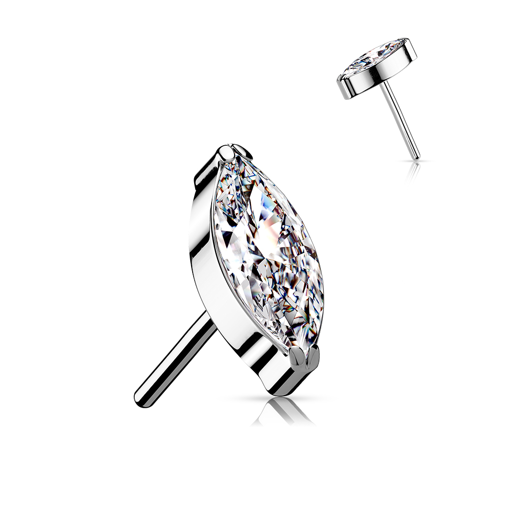 Fik vi nævnt at denne top er lavet af G23 titanium? Dette smykke har altså det hele også når det kommer til kvalitet. Den smukke marquise-formede sten er sikkert indfattet i materialet, så du skal ikke bekymre dig om at den falder ud.