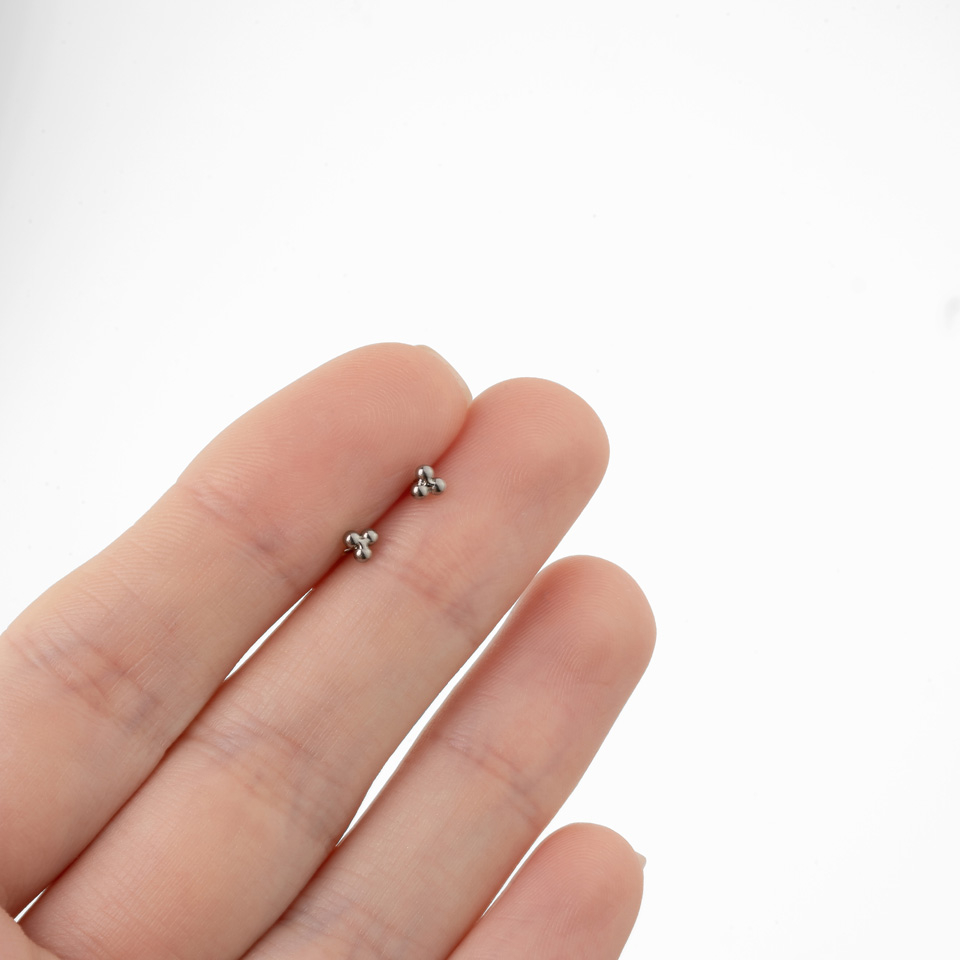 Push-in labret af titanium med tre små kugler i trekantsformation