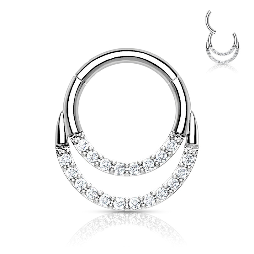 Navn: Ring af titanium med hængsel og dobbelt stenrække