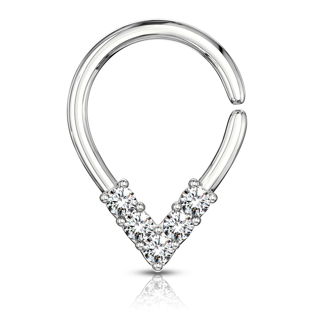 Messing er dog ikke en særlig køn farve til piercingsmykker, derfor er smykket også blevet belagt. Så vælger du eksempelvis en af guld udgaverne, så er det blevet belagt med et lag 14 karat guld. I bunden af smykket sidder der fem klare sten, som giver smykket en smule elegance.