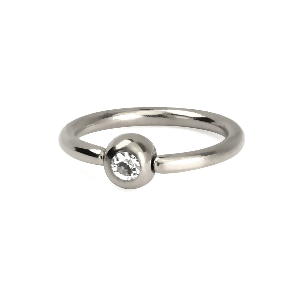 Ringen du ser herover, har ingen løse dele, som man normalt ser ved almindelige kugleringe. Kuglen er nemlig fastmonteret på ringens ene ende. Det betyder selvfølgelig også, at du ikke kan tage kuglen ud af ringen. Måden hvorpå du åbner og lukker ringen, er ved at vride ringen, så den får samme form som ringen du ser øverst til højre på billedet. Når ringen har samme form, kan du isætte den i din piercing og vride ringens ender sammen igen.