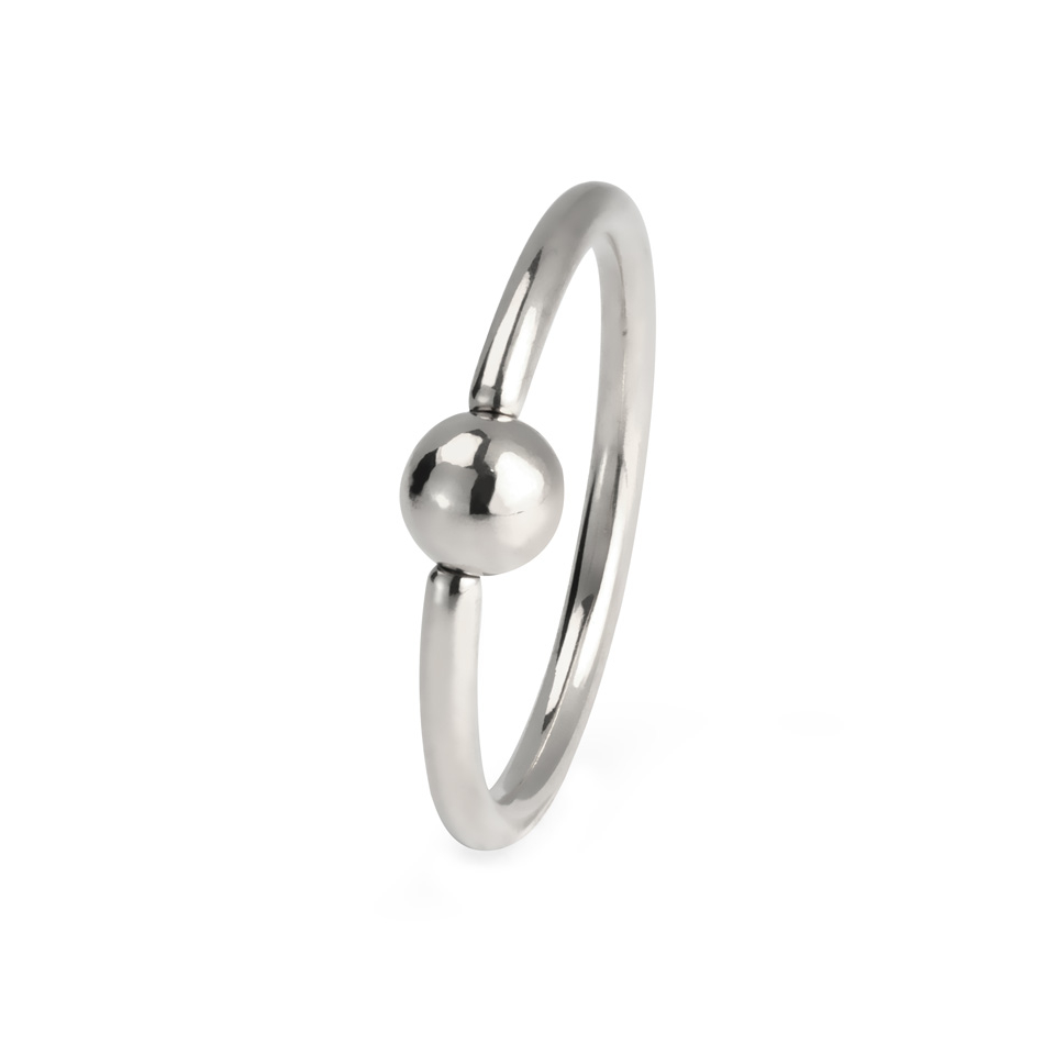 Ringen ser ud, som den plejer. Den eneste forskel er, at kuglen er svejset fast til ringens ene ende og dermed sidder permanent fast. Dog skal du ikke rive i kuglen, da du kan risikere at rive kuglen af.