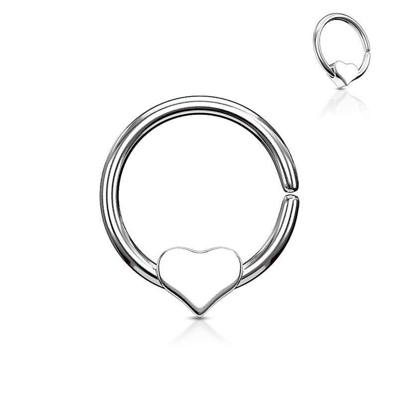 Denne ring består i al sin simpelhed af to stykker kirurgisk stål. Der er selve ringen, som har en lille åbning og så er der vedhænget, som er formet som et hjerte. På tværs af hjertet er der boret et lille hul, som er marginalt større end ringes tykkelse. Hjertet kan derfor bevæges frit, når det sidder på ringen. Tyngdekraften vil naturligvis altid sørge for, at hjertet sidder i bunden af ringen.