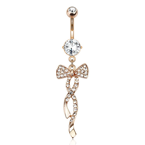 Rødguldsbelagt navlepiercing med sløjfe og sten