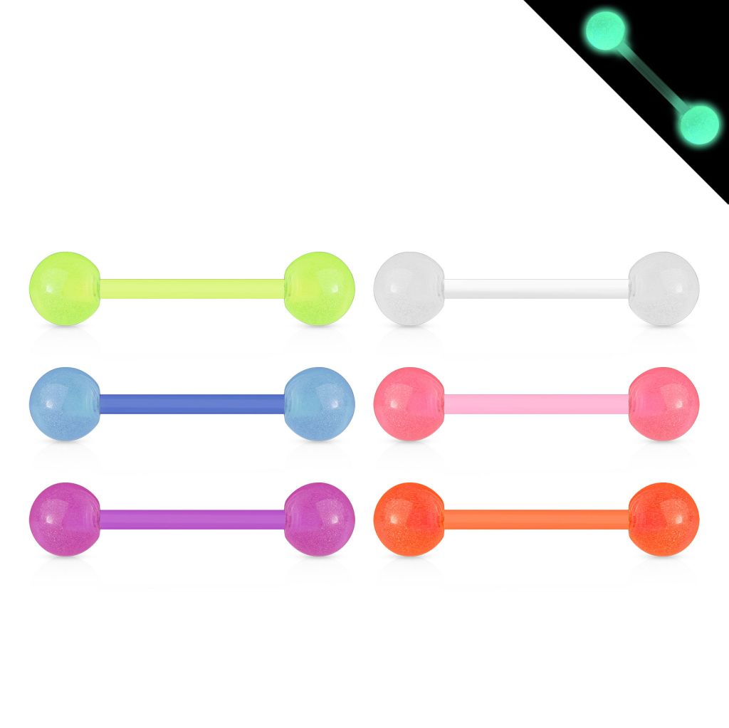 Navn: Selvlysende tungepiercinger i seks forskellige farver