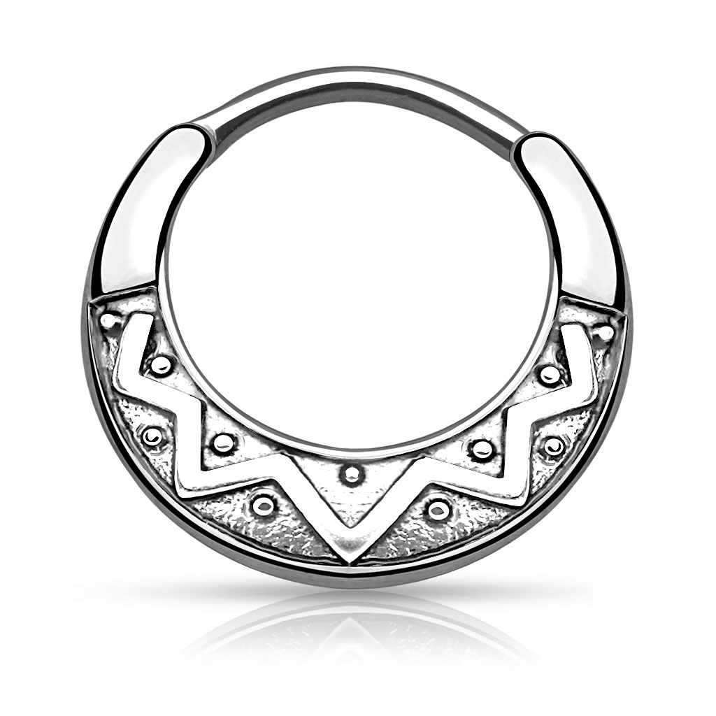 Er det unikke og særprægede smykker du kan li', så har du hermed fundet et rigtig flot og lækkert smykke, til din septumpiercing. Smykket her er en septumclicker, hvor den lille stav som åbner og lukker smykket, blot klikkes op eller i, når du skal have din septumpiercing af eller på. Staven er samtidig også den del af smykket som går gennem selve piercingen i næsen.