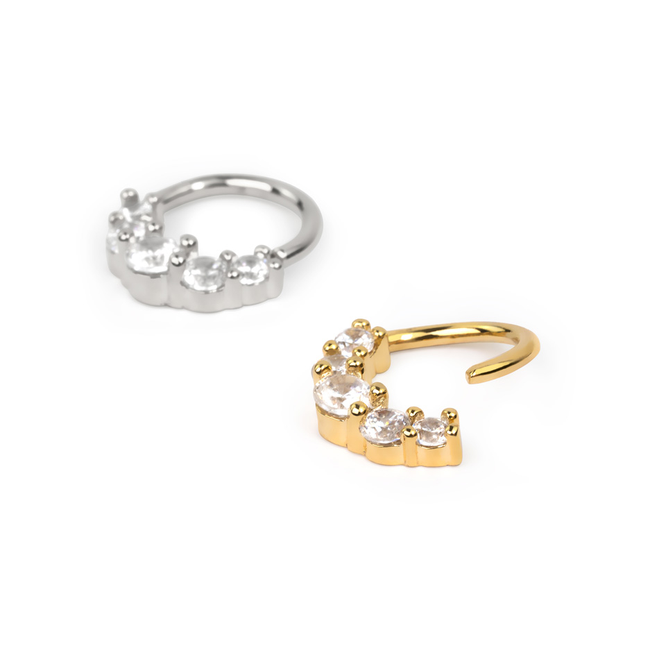 Klappemekanismen fungerer godt, jeg har ikke brudt noget, selv efter flere åbninger og lukninger. Som septum er ringen næsten lidt for stor til mig, jeg ville have ønsket, at stenene var tættere på næsen, men overordnet set er den virkelig smuk, man kan dog se, at den ikke var alt for dyr. Til prisen ville jeg helt bestemt købe den igen.