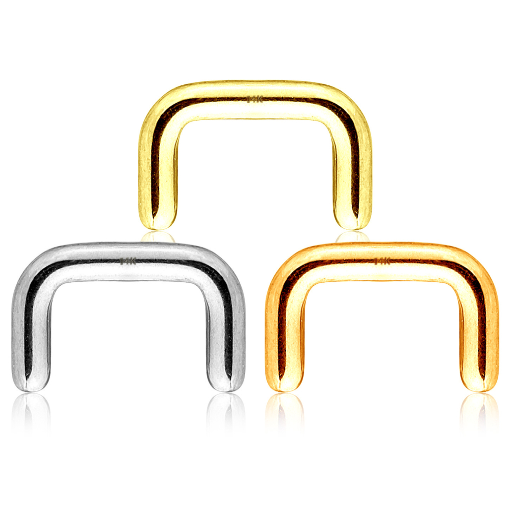 Her kommer der et guldkorn mere - dette smykke er faktisk lavet af 14 karat guld. Du kan vælge mellem flere udgaver af dette smykke, som alle er lavet af 14 karat guld. Du kan f.eks. få smykket i en 14 karat hvidguldudgave. Da der også kan være varierende trådtykkelse på septum piercinger, kan du også vælge mellem flere trådtykkelser på smykket, blandt andet 1,2 mm og 1,6 mm.