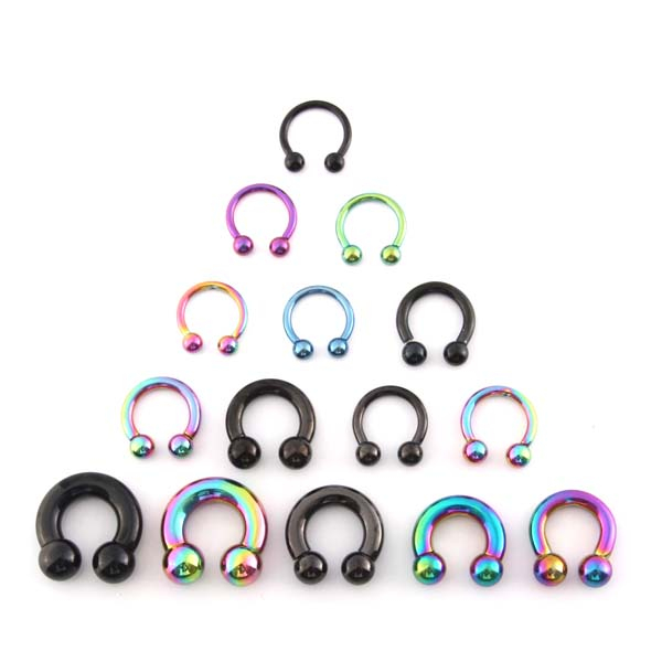 Skal din store piercing have lidt smæk på farven, så har du her mulighed for at få dig nogle store hestesko, i trådtykkelser over 2 mm. i flere farver.