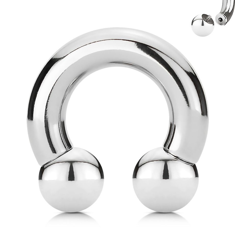 Hesteskoen her er udstyret med et smart og praktisk skruegevind som sidder placeret indvendigt i smykket. Det betyder at du kan skrue kuglen af og føre selve hesteskoen gennem din piercing, uden at risikere at lave ridser eller skrammer undervejs. Selve skruedelen er nemlig monteret på kuglen ved dette smykke, som så nemt og smertefrit kan skrues på plads, når smykket først sidder hvor det skal.