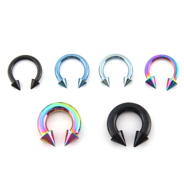 Hesteskoens to store spikes, giver din piercing et ekstra råt udtryk og du bestemmer selv i hvilken farve.
